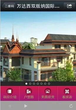 万达西双版纳国际度假区微楼书:在微信上直接展示楼书,展示项目图片、文字,既可以透过朋友圈分享楼书、资讯,还可以直接在微信上预约看房,能够与不在项目现场的客户进行互动交流。