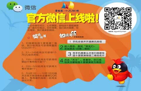 在国内各大开发商还在观望犹豫的时候,位于深圳东的碧桂园十里银滩瞅准先机,成为房地产行业第一个试水微信营销的开发商。碧桂园十里银滩还推出一系列优惠活动配合微信推广:扫描二维码,前50名网友可获得限量版QQ公仔一个,51-149名网友可获得1个月QQ会员体验等。由于是第一个吃螃蟹的,碧桂园十里银滩公众号当天引来各方人士关注。
